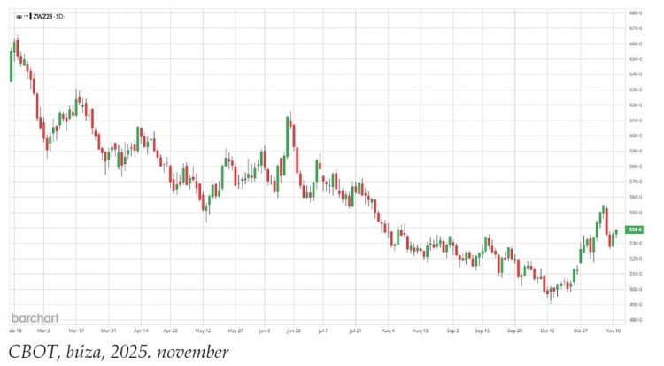 A globális gabonapiacokra az elmúlt hónap során általánosságban kiegyensúlyozott kereslet-kínálati viszonyok és enyhén csökkenő árak voltak jellemzők, azonban a geopolitikai, időjárási és szabályozási tényezők – többek között az exportkorlátozások, USA kormányzati leállása, Kína exportpolitikája – továbbra is jelentős bizonytalanságot okoznak, még a rekordtermések árnyékában is.