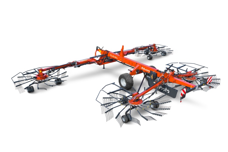 A Kubota TE rendterítők és RA rendképzők a takarmány minőségének megőrzését szolgálják. A könnyű, mégis masszív szerkezet, a pontos rotor-geometria és a precíz terítési szög gyors száradást eredményez, csökkentve a tárolási veszteségeket.