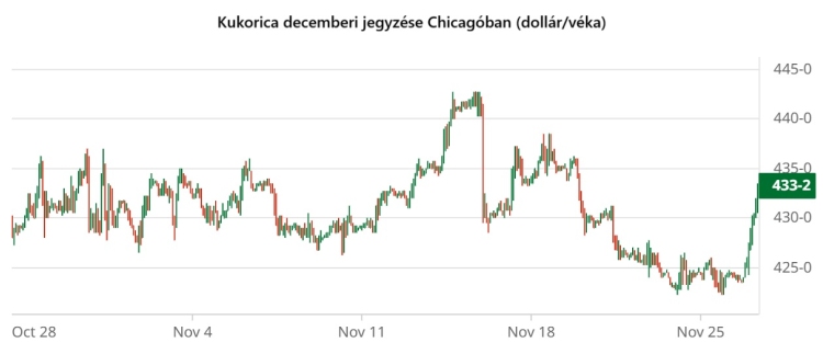 November 20-ig Brazíliában a terület több mint 80%-án, Argentínában pedig 37%-án vetették el a fővetésű kukoricát. Az időszakos esők segítik a vetések befejezését és az állományok fejlődését, ezért a májusi kukoricakínálatot optimistán értékelik a piaci szereplők. Úgy tűnik, sem most, sem később nem várható hiány a világpiacon. A chicagói tőzsdén mégis visszapattantak az árak.