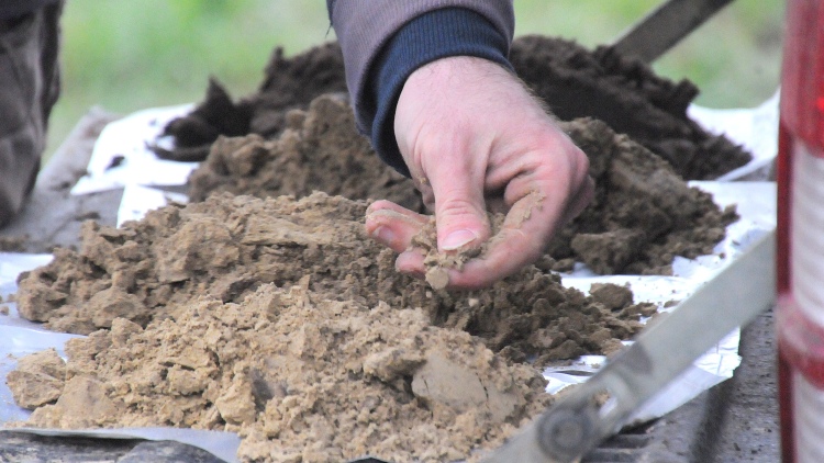 Talaj-mintavétel a Homokhátságon egy szelvényelemzés előtt (Fotó: Horizont Média/archív)
