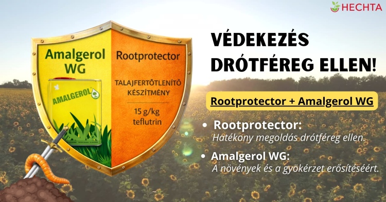 A megnövesztett gyökereket meg is kell védeni a talajlakó kártevők károkozásától. Ha drótféreggel fertőzött területre vetjük a növényeinket, ilyen megoldás az Amalgerol® kombinációja a teflutrin hatóanyagú talajfertőtlenítő szerekkel. Miközben az Amalgerol® segíti a növények kelését, a teflutrin hatóanyagú RootProtector® 1,5 G mikrogranulátum rovarölő szer elpusztítja a drótférgeket a talajban. A RootProtector® 1,5 G 16 kg + Amalgerol® WG 4 kg bérkeverékét egy 20 kg-os zsákban lehet megvásárolni. A mikrogranulátum keverék kijuttatása mikrogranulátum szóróval, a vetéssel egy menetben történik. A keverék dózisa drótférgek ellen 10 kg/ha, mely során kijuttatásra kerül 8 kg/ha Rootprotector® 1,5 G és 2 kg/ha Amalgerol® WG, 1 zsák keverék 2 hektár kezelésére elegendő. A keverék kukorica és napraforgó kultúrákban használható. AÖP: 1 pont.