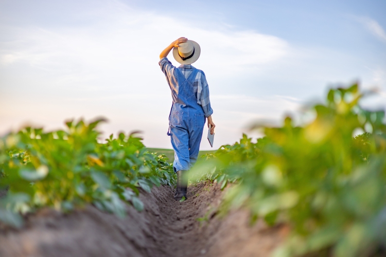 Gazda burgonyaföldön ellenőrzi a termést