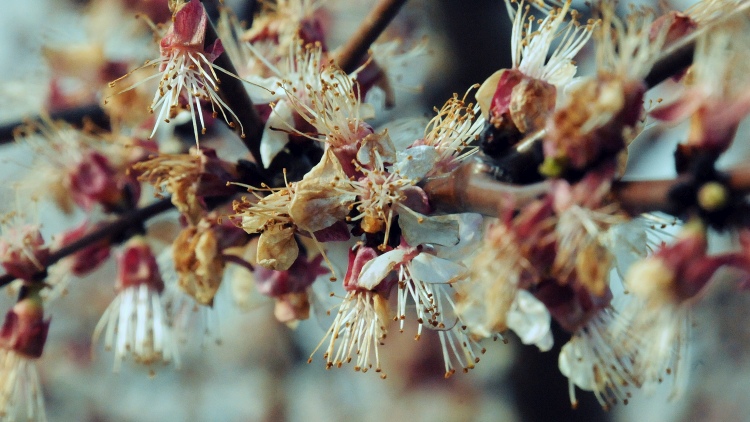 Fagykáros virágzat egy Csongrád megyei barackültetvényen (Fotó: Horizont Média/Kohout Zoltán)