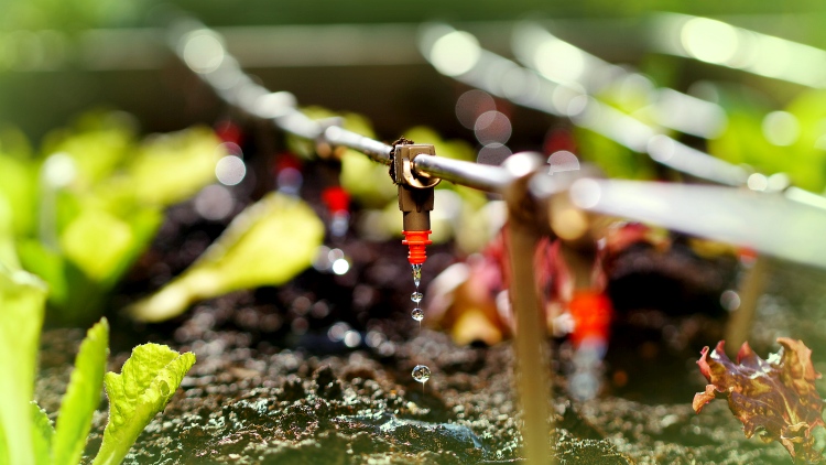 Víztakarékos, csepegtető öntözési rendszer egy ültetvényen (Fotó: Shutterstock)