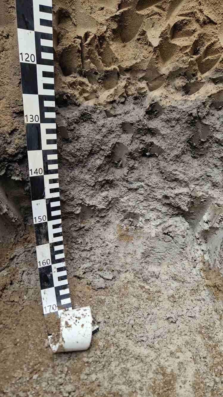 „A talajoknál az ilyen színváltás nem jellemző” – magyarázta a kutató. A szelvényben lefelé haladva azután a fekete réteg szürkére, majd nagyon világos, csaknem fehéres szürkére váltott. Mint kiderült, a feltárás során a területen tipikusan előforduló édesvízi mészkő – helyi nevén darázskő, varangykő – rétegét fogták meg. Ez a réteg a buckás, semlyékes tájakon jellegzetes képződmény. A homokban mozgó karbonát bizonyos mélységben kicsapódik, cementáló, mészköves réteget hozva létre. Ennek régészeti-kultúrtörténeti jelentősége is van. Az Alföldön ez volt az egyik kevés helyben elérhető kőzetféleség, ezért építőanyagként használták. Talajtani szempontból azonban talán még fontosabb a vízgazdálkodási szerepe: a mészköves szint megfogja, felduzzasztja a lefelé szivárgó vizet, így javítja a homoktalaj víztartó-képességét. A feketébb, felette lévő sáv azért is alakul ki, mert a víz itt „megreked”, és a szerves anyag is felhalmozódik ebben a zónában.