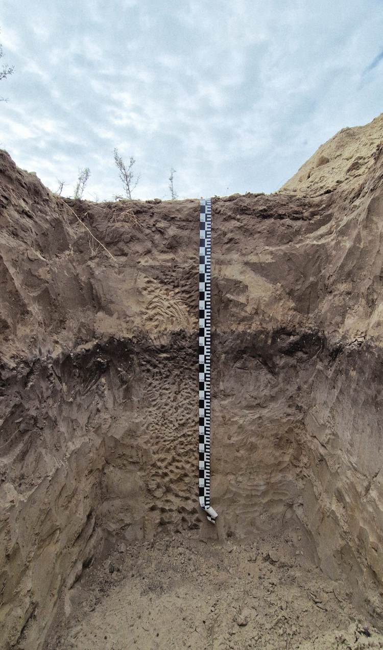 Ez az úgynevezett eltemetett A-szint: egy egykori talajfelszín humuszos rétege, amelyre a későbbi homokmozgások több tíz centiméternyi homokot hordtak rá. A régi talajfelszín megszűnt, a talajképződés a ráhordott, új homokrétegen indult el, miközben az eredeti, sötét humuszos szint „befagyott” mélyen a profilban.