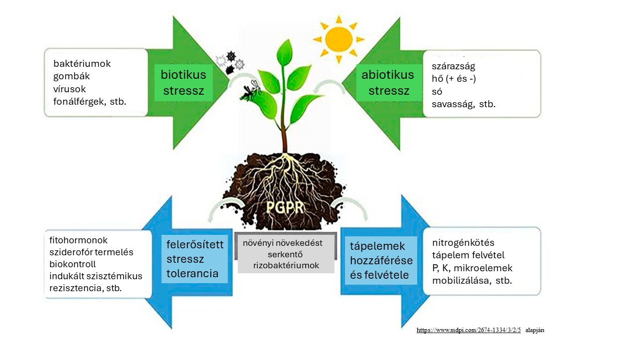 A talajban élő mikroba-közösség (baktériumok, gombák, algák, stb.) bár szabad szemmel nem látható, mégis a talajélet kulcsfontosságú szereplője. A talajban élő, növényi növekedést serkentő rizobaktériumok (PGPR) szoros kapcsolatban állnak a gyökérrel, a gyökérkörnyezettel. Megkötik a levegő nitrogénjét, mobilizálják az ásványosodott, a növények számára hozzáférhetetlen tápelemeket (kálium, foszfor, cink, stb.), növényi maradványt bontanak. A növényi hormonháztartás befolyásolásával, antioxidáns termeléssel segítik a növényeket a stresszhatásokkal való küzdelemben (szárazság-, hőstressz, stb.).